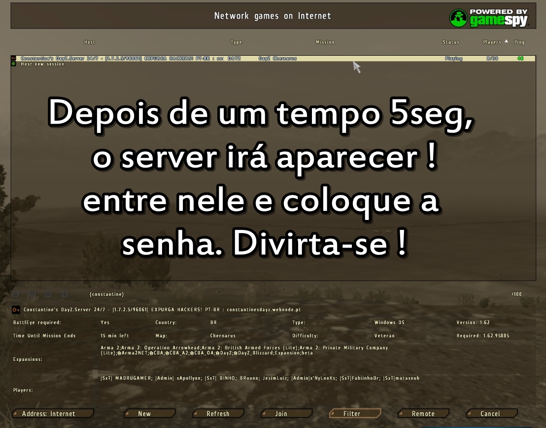 Vale lembrar que isto é uma forma alternativa ! Então caso funcione contigo é bom usar, pois o TUNNGLE é legado de mais. Se em seu jogo der "Connection Failed" recomendamos sair do jogo e entrar de novo, se o erro persistir use o TUNNGLE (DayZ MOD (BR) ).